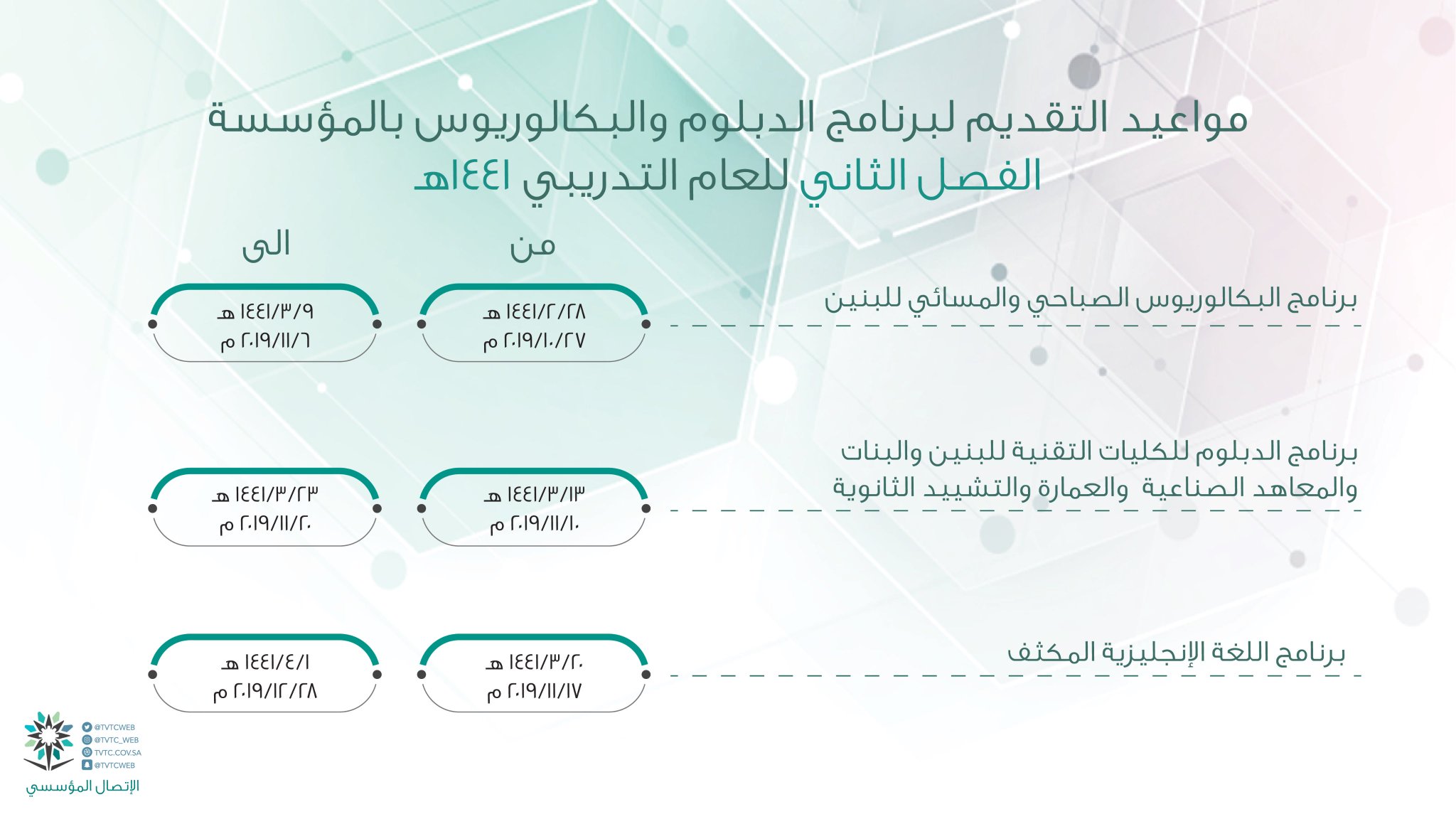 التدريب التقني On Twitter مواعيد القبول والتسجيل لبرامج التدريب التقني للفصل الثاني من العام التدريبي 1441هـ Https T Co Evwgeuhu3k