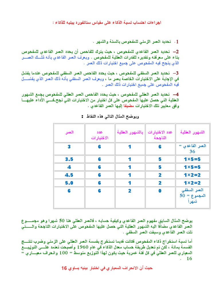 اجراءات احتساب نسبة الذكاء على مقياس ستانفورد بينيه للذكاء